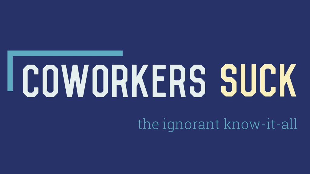 Hopefully as soon as you read the title you conjured up a mental image of a coworker whom is the perfect candidate for the Ignorant Know-It-All. And hopefully as you read this you are nodding your head constantly in agreement as I whine about this certain type of person. We all know them and we all loathe them: the person at work who is constantly telling people how to do their job, and even though they are in the same job position as you are, they seem to act like they’re part of middle management and know everything. Making matters worse, they don’t actually seem to have any clue as to what needs to happen at work even though they act like they do. I recently started a new job and it took me a total of one week to run into TWO of these people. TWO! Lucky me! I’m sure there are a few more, but whatever, they must be really low-key about being jackasses. These workers Suck, and they Suck for some very simple reasons: no one likes to be ordered around and if you are ordered around, you’d hope you wouldn’t be ordered around to do some very stupid things. The Ignorant Know-It-All Sucks.