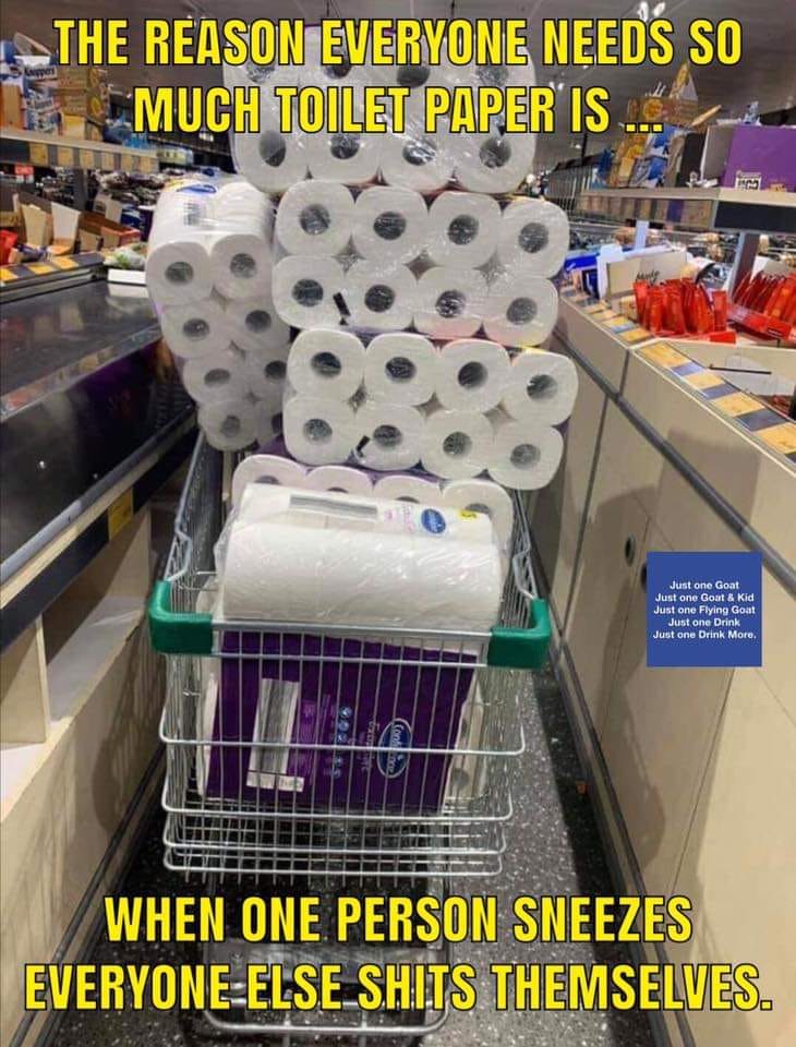 Not that anyone on social media has any sort of brain for this sort of thinking. All that’s there currently are fucking stupid fucking memes about toilet paper. While I love memes, I hate these stupid popular ones. Yes, it’s stupid that people are stocking up on toilet paper for some reason, but the memes making fun of it are even dumber than those stocking up, albeit in a different way.