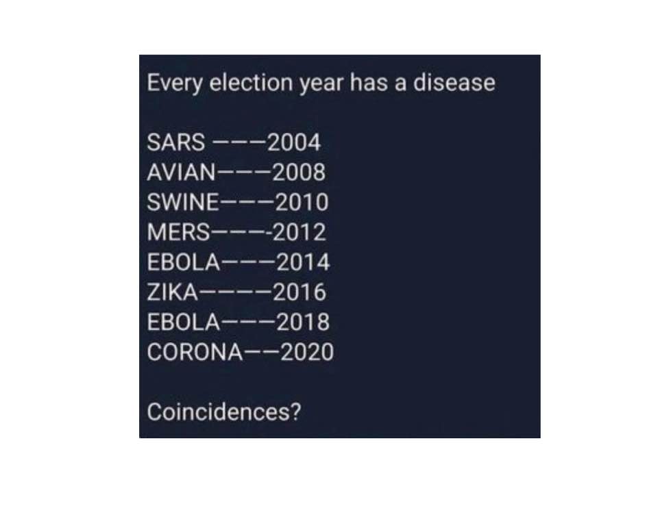 It screams of a US-centric mindset. As if the only thing these viruses (and the people supposedly manufacturing them/releasing them on the masses) only give a fuck about are US elections. Going a bit further into this logically, this implies it has something to do with politics. I don’t know what the point even is here. Is this a way for Republicans to steal the election? Is it a way for them to shut down voting even if it hadn’t happened in the past? Is it a Democratic conspiracy to undermine the Republicans? And the party in power each election year hasn’t even been the same. I simply don’t know what this is even trying to prove. I don’t know, maybe something about The Deep State.