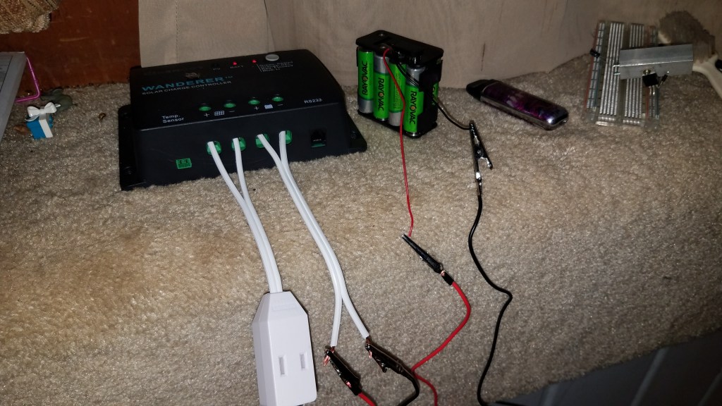 I woke up and the panel didn’t seem to be doing shit. None of the lights on the charge controller were on, and checking the panel output with my tongue (yes) proved that it wasn’t putting out a damn thing, nowhere near 20 volts. Using a multimeter showed it was providing about a half-volt of potential. This thing should’ve been putting out 24 volts max and 0.5 volts was way too small. What was wrong?