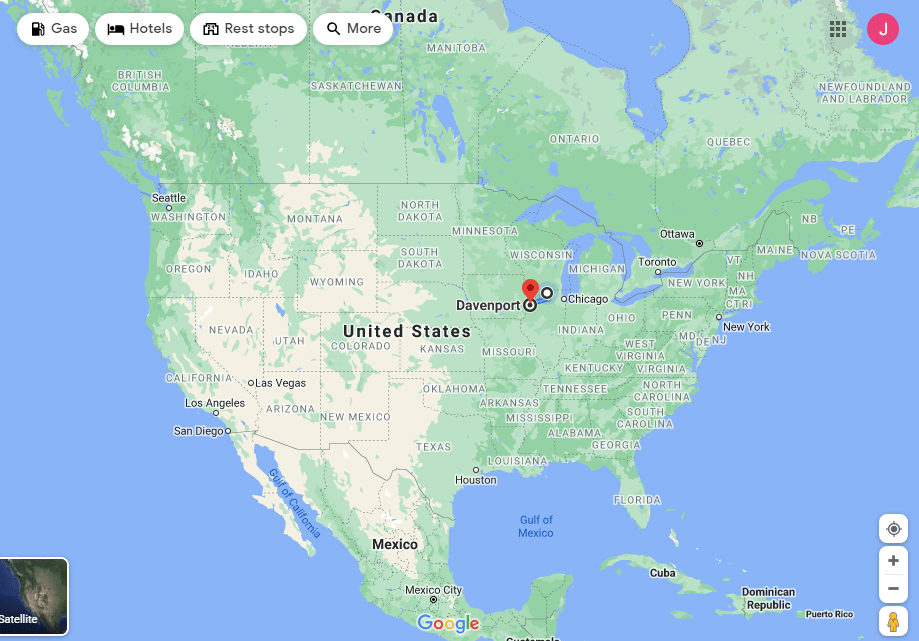 Davenport, Iowa is exactly two hours away from Rockford. My family likes to take I-39 to I-80 but if you look at a map this takes you unnecessarily south from the straight line distance. It’s wasteful and the highway is boring. I plotted a new route that is both shorter distance-wise, the same time-wise, has no tolls, and is half winding country roads and half interstate. I might be blowing this out of proportion but this route — my route because I ‘invented’ it — is the perfect way to drive from Rockford to Davenport.